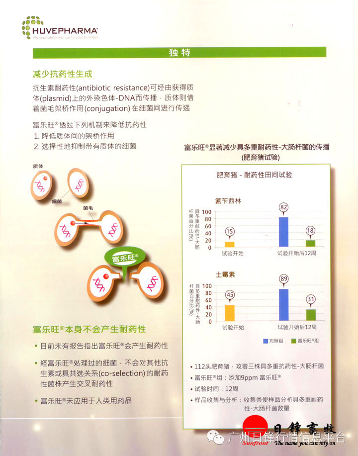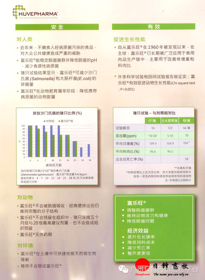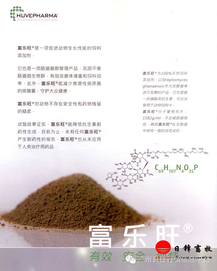 一、富乐旺是目前批准使用的促生长饲料添加剂中回报率最高的产品,是目前唯一 一个0停药期,并可有效缓解及抑制耐药性的产品,经权威证实在目前饲料药物使用规范允许使用的抗生素中,在国家允许的使用剂量内添加,富乐旺的性价比最突出,也是最有效的产品。