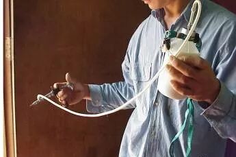 (2)专用器械气雾法: a、 使用时散发一种非常细的薄雾/浓雾。 b、 雾滴直径<40~20μm。 c、 采用此技术必须在鸡群处于最理想的健康状态时才可使用,缺乏操作经验的人员不要采用这种技术。 d、进行气雾操作的人员必须戴上防护面罩。