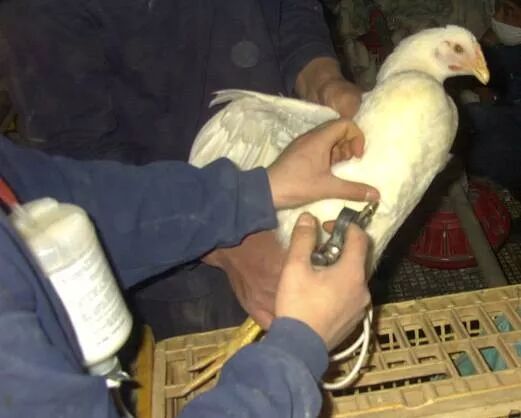 1、由于肌肉加工的需要,或者由于多次接种的原因,限制使用颈部、胸部、腿部和翅膀注射的方法,可采用尾部肌肉注射。
