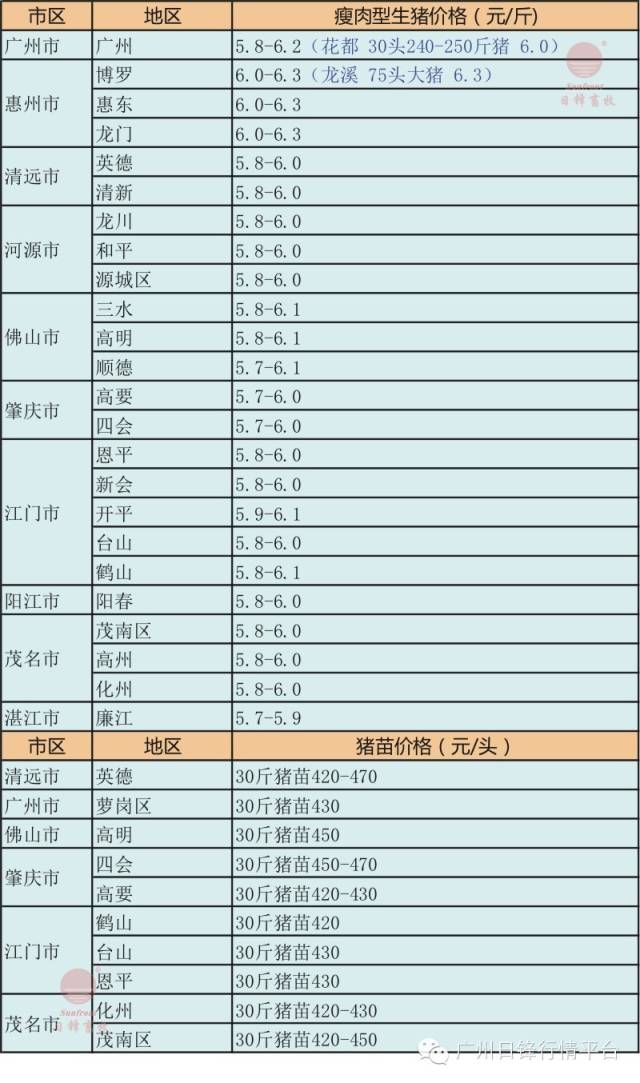 提示:以上部分猪价信息由广州日锋一线工作人员实地收集,不同地区不同猪场均有一定差异,仅供参考! (蓝色字代表当日实际成交价格)