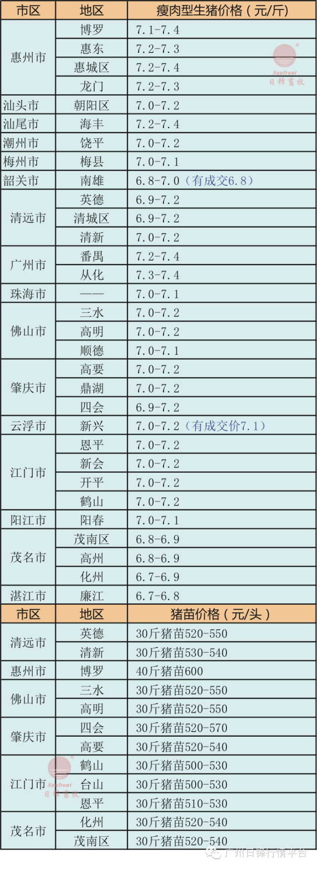 提示:以上部分猪价信息由广州日锋一线工作人员实地收集,不同地区不同猪场均有一定差异,仅供参考! (蓝色字代表当日实际成交价格)