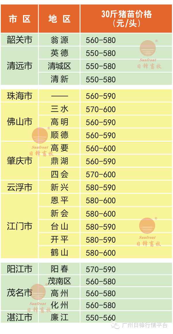 提示:以上部分猪价信息由广州日锋一线工作人员实地收集,不同地区不同猪场均有一定差异,仅供参考! (蓝色字代表当日实际成交价格)