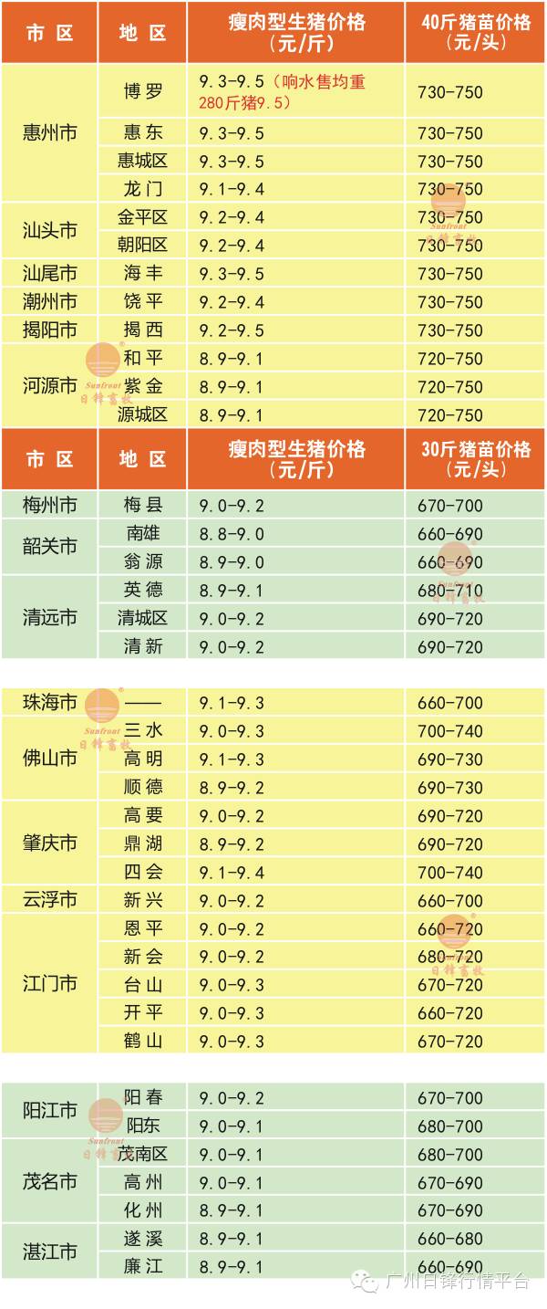 提示:以上部分猪价信息由广州日锋一线工作人员实地收集,不同地区不同猪场均有一定差异,仅供参考! (红色字代表当日实际成交价格)